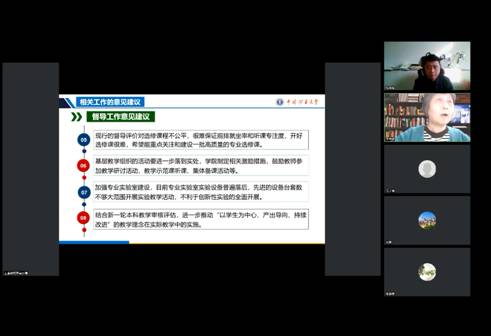 王香婷老师首先代表学院督导专家组对2022-2023-1学期期中教学督导工作进行总结,并对学院教学工作提出了宝贵意见建议。王老师指出在本学期多次线上线下教学模式转换的情况下,学院教师能够及时作出调整按要求开展教学,熟练运用智慧教育平台和现代化教学手段有效组织课堂教学。在今后的课堂教学中,希望教师在讲授知识的同时注重对员工能力的培养;精炼讲课内容提高课堂效率、运用信息化手段开展更加深入的课堂互动;进一步提高全英文课程的教学效果,做到专业知识、专业英语能力切实提升;进一步提高课件制作、课程导入设计、重难点知识归纳等教学环节的规范性;拓展员工学习空间、促进员工自主学习能力提升,结合新一轮本科教学审核评估,进一步推动以员工为中心、产出导向、持续改进的教学理念在实际教学中的实施,不断提高人才培养质量。