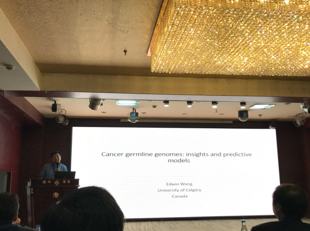 开幕式后,Edwin Wang教授为大家进行了题为“Cancer germline genomics: from biological insights to genomic predictions”的报告,详细介绍了他们在癌症遗传基因组学方面的最新重要研究成果。崔庆华教授为大家做了题为“microRNA 和 lncRNA 重要性计算”的报告,介绍了他们在非编码RNA方面的科研成果。骆嘉伟教授和周丰丰教授分别作了题为“人工智能在复杂疾病发病机理分析中的应用”和““弱弱得强”,浅析特征选择算法的深挖空间”的报告,为大家展示了他们在生物信息学算法方面的研究进展。陈兴教授作了题为“大数据时代下基于网络算法和机器学习的生物信息学研究”的大会报告,介绍了他所领衔的团队在矿大这两年多取的一系列学术成果。下午,南京林业大学教授业宁,扬州大学教授张韬,江南大学教授戴晓峰,东南大学副教授涂景,苏州大学副教授胡广,淮海工学院副教授卢辰,新格元(南京)生物科技有限公司范珏博士,南京航空航天大学的刘海洲博士,bat365在线平台官方网站的瞿佳博士进行了大会报告。报告内容涉及生物信息学各个领域,引起参会代表的热烈讨论。