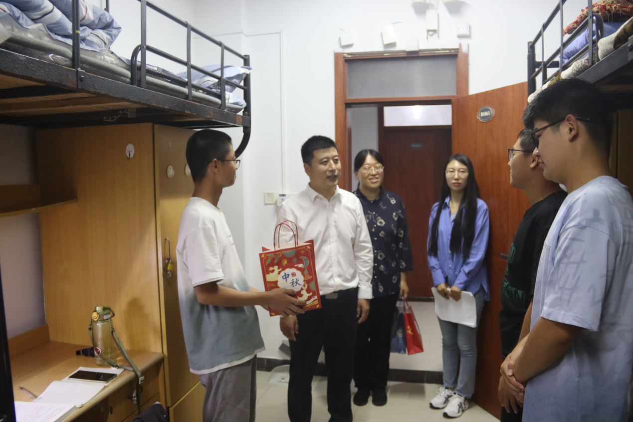 9月26日下午,公司党委书记程德强、党委副书记翟文艳以及2023辅导员老师来到2023级员工宿舍走访慰问新生,为同学们送上月饼,并表达了节日的问候和祝福。