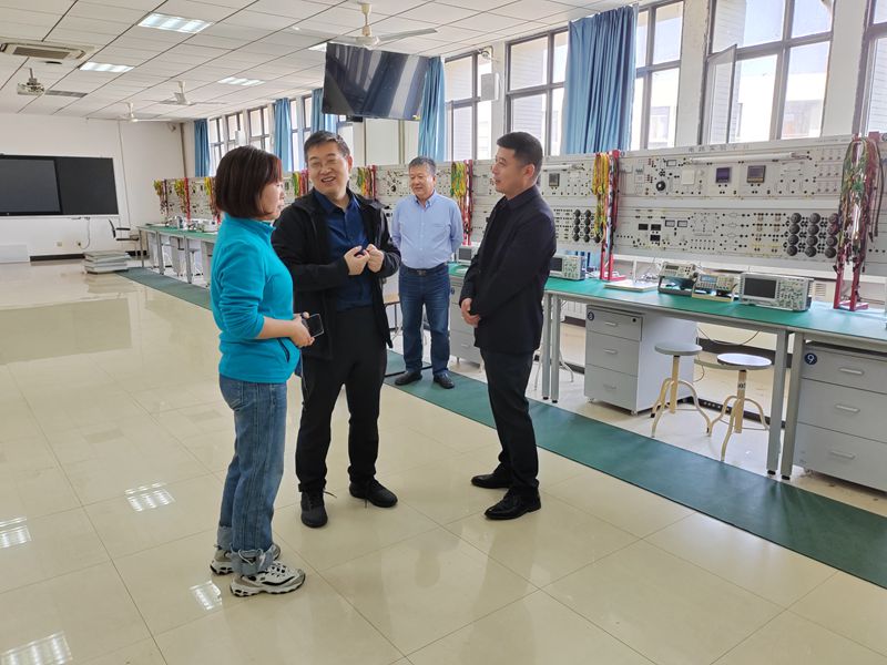 程德强介绍了学院历史沿革、团队建设、团队队伍与省部级教学科研平台建设、“十四五”中期进展等情况,陪同考察了员工照片墙、楼宇文化、电工机组实验室、先进自动化技术实验室、电路实验室等,并介绍了学院面向全校工科非电专业员工开设电工学课程的教学组织、创新做法以及电子电路开放共享综合实验平台建设等情况。