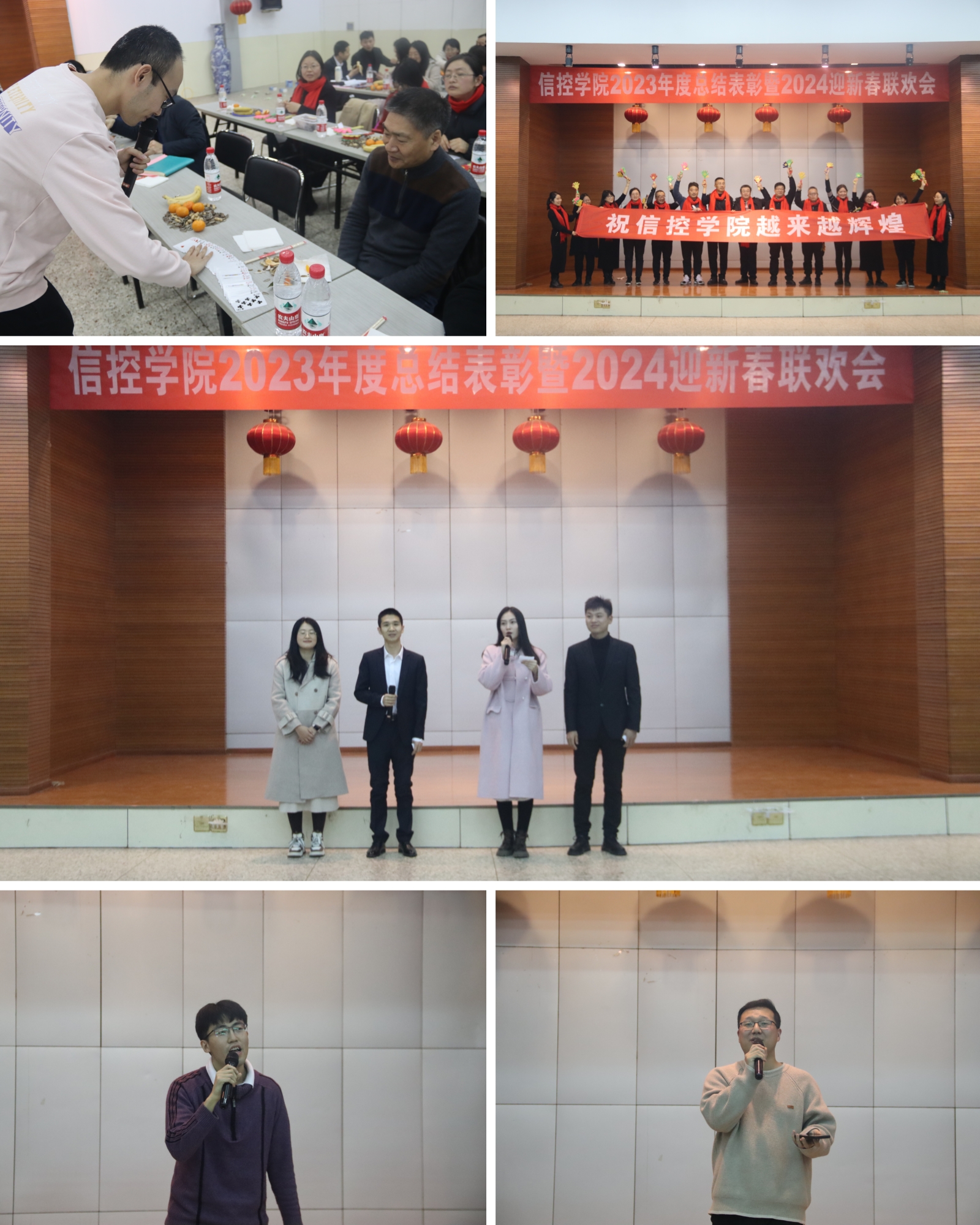 第二阶段举行2024迎新春联欢会,王俊、王悦、徐飞翔、林常见等四位青年教师主持。全体教职工积极参加,自动化系带来了魔术表演,电工电子与实验中心带来了合唱歌曲《阳光总在风雨后》,物联网中心带来歌曲《七里香》,党政机关带来歌曲《逆光》。联欢会上,各位老师充分展现自身才艺,为大家带来了歌曲演唱、舞蹈、魔术等精彩纷呈的节目。在游戏活动环节,各位老师积极参与到踢毽球、投壶、跳绳接力等游戏活动当中,齐心协力,合作取胜,不仅营造了浓厚的节日气氛,也拉近了老师们彼此的距离,有效增强了学院教职工的凝聚力。
