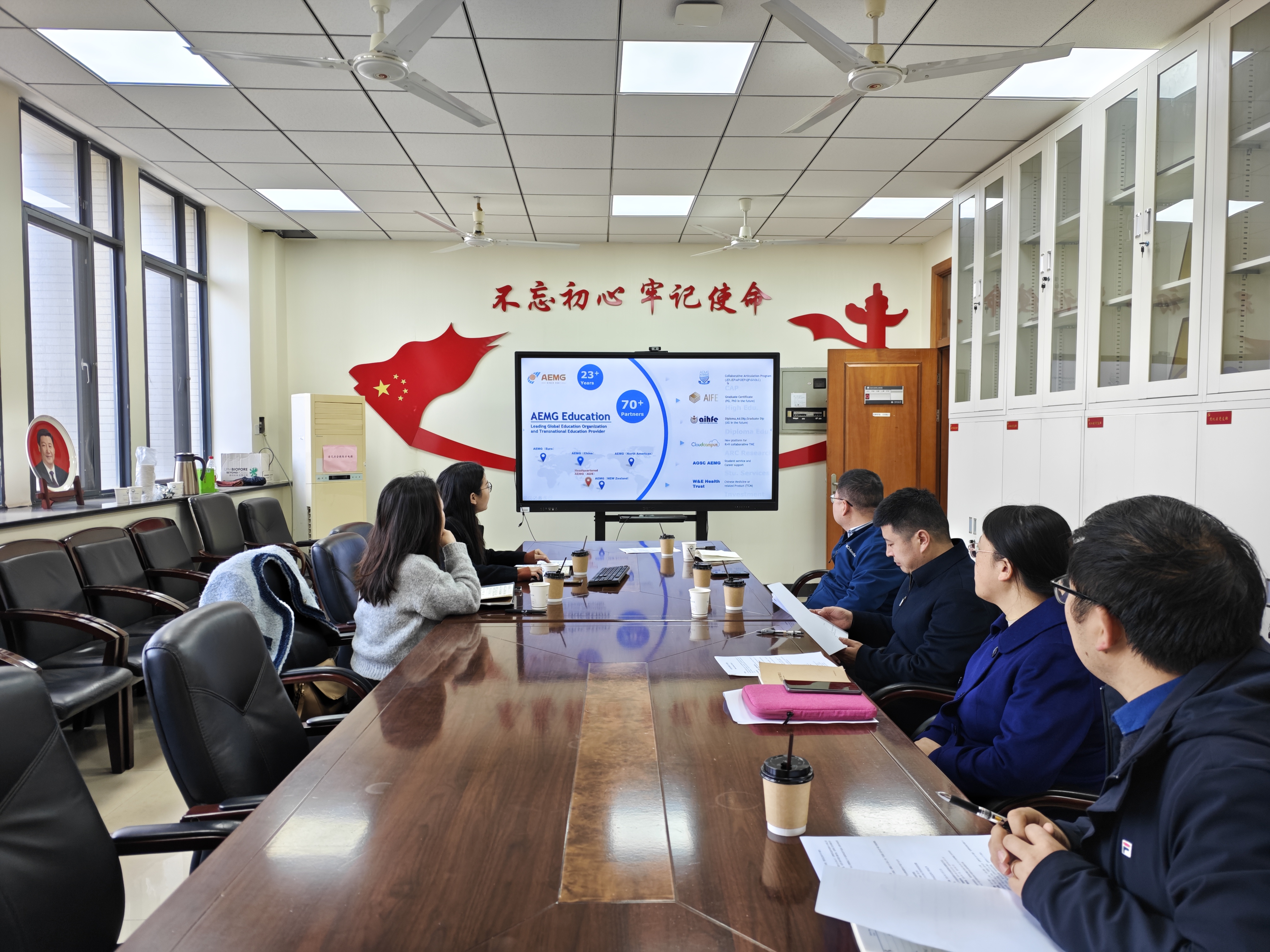 陈静和仇颖洁简要介绍了AEMG教育集团的基本情况、所运行的员工国际交流项目和为学院国际化教育发展所能提供的相关资源。