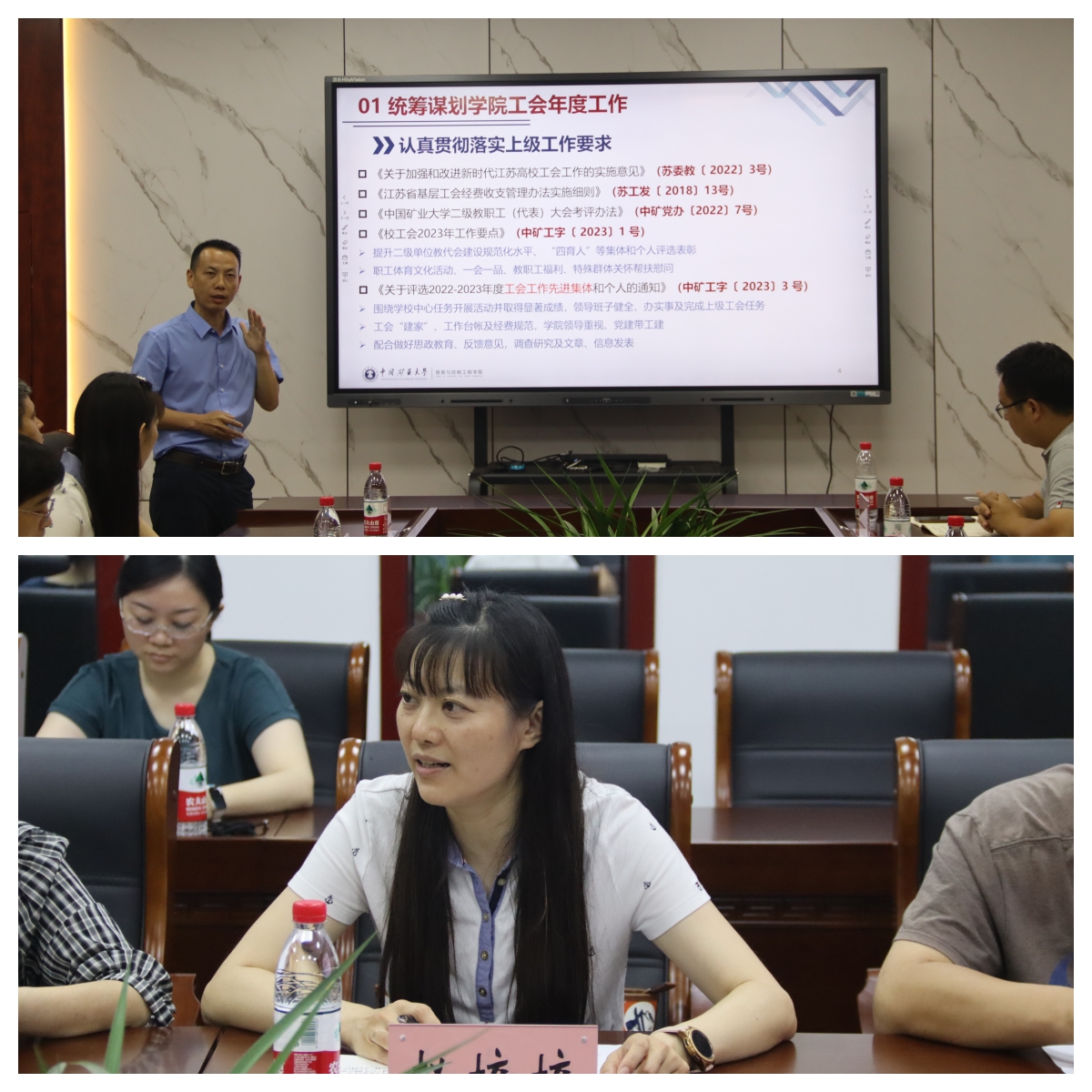 程德强对章毛平一行来院调研表示欢迎,并对校工会一直以来对学院的关心支持表示感谢。随后,陈平介绍了公司党委认真贯彻落实学校二级教代会考评办法、校工会2023年工作要点以及聚焦学院改革与事业发展中心工作、统筹谋划学院工会年度工作的思路举措,并从人员组织、工会经费、活动场所、宣传阵地、教职工意见听取和活动参与等方面解读了学院支持工会工作的相关保障机制和工作做法。赵培培汇报了学院工会组织架构、“一会一品”活动、职工福利、二级教代会等工作。