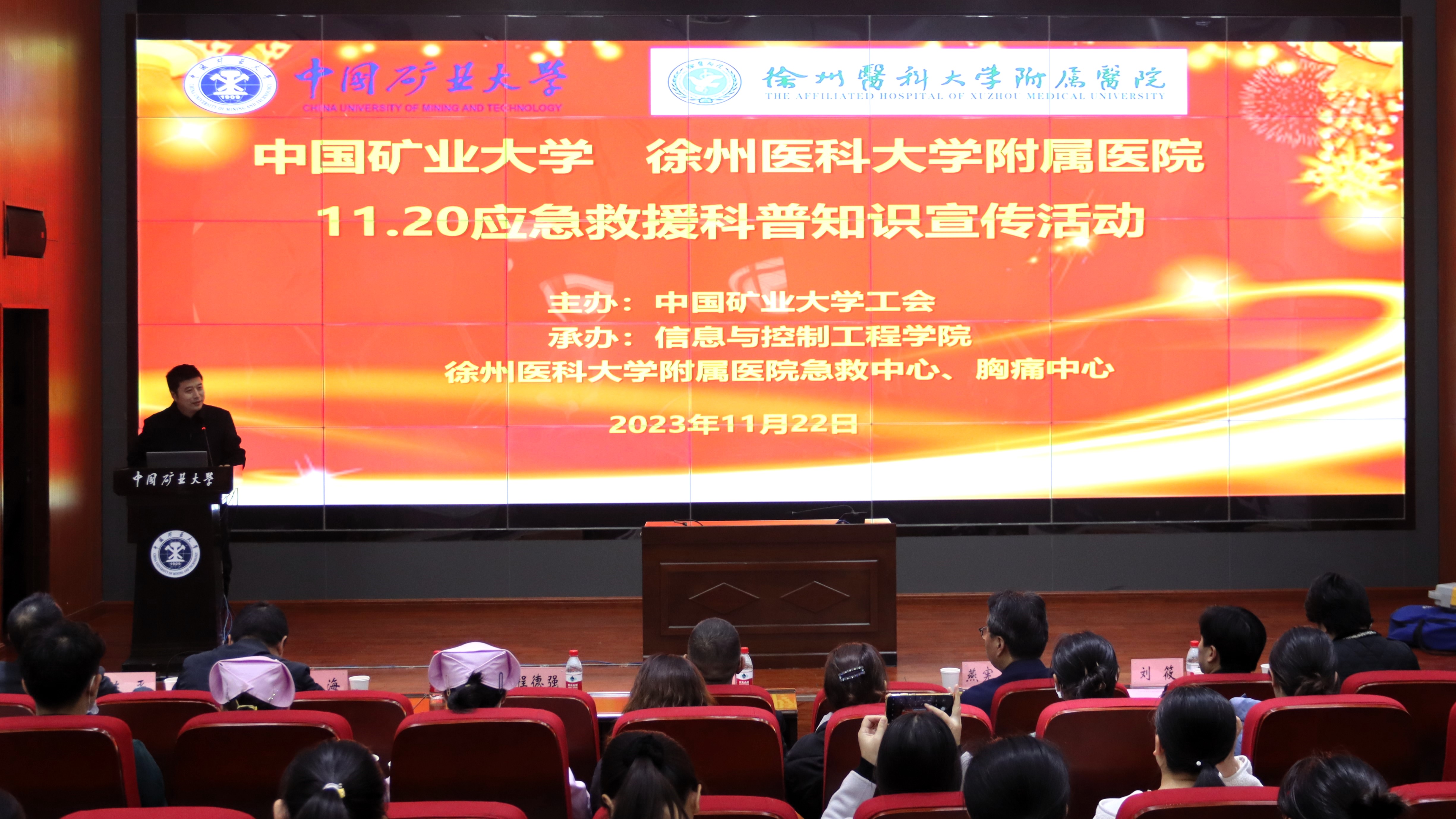 为增强师生应急救援意识和技能,11月22日下午,由校工会主办,公司与徐州医科大学附属医院承办的“守护健康,从‘心’开始—11·20应急救援科普知识宣传活动”在学院报告厅举行。徐州医科大学附属医院副经理燕宪亮,校工会主席陈仲元,公司党委书记程德强、副书记翟文艳,副经理刘海、陈平出席,附属医院相关科室主任、医务人员,以及来自全校各单位的300余名师生参加。