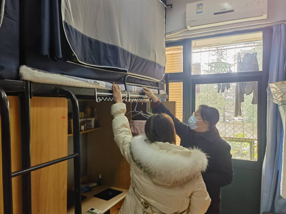 公司党委副书记翟文艳带领全体专职辅导员深入员工宿舍进行全方位的安全检查,重点围绕员工安全用电、禁用违章电器以及宿舍卫生等方面开展。检查过程中,翟书记悉心叮嘱同学们在复习迎考的同时更要强化安全意识,遵守宿舍管理规定,保持生活区域整洁卫生。翟书记对个别寝室出现的问题提出了整改意见,如禁止使用电锅等违章电器、出门须关闭电源、上铺床垫不宜过厚等,同时倡导学子们做到寝室内干净整洁和安全稳定,筑牢宿舍安全防线。