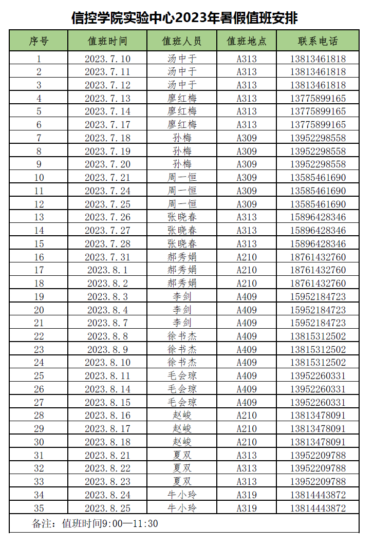 bat365中文官方网站实验中心2023年暑假值班安排